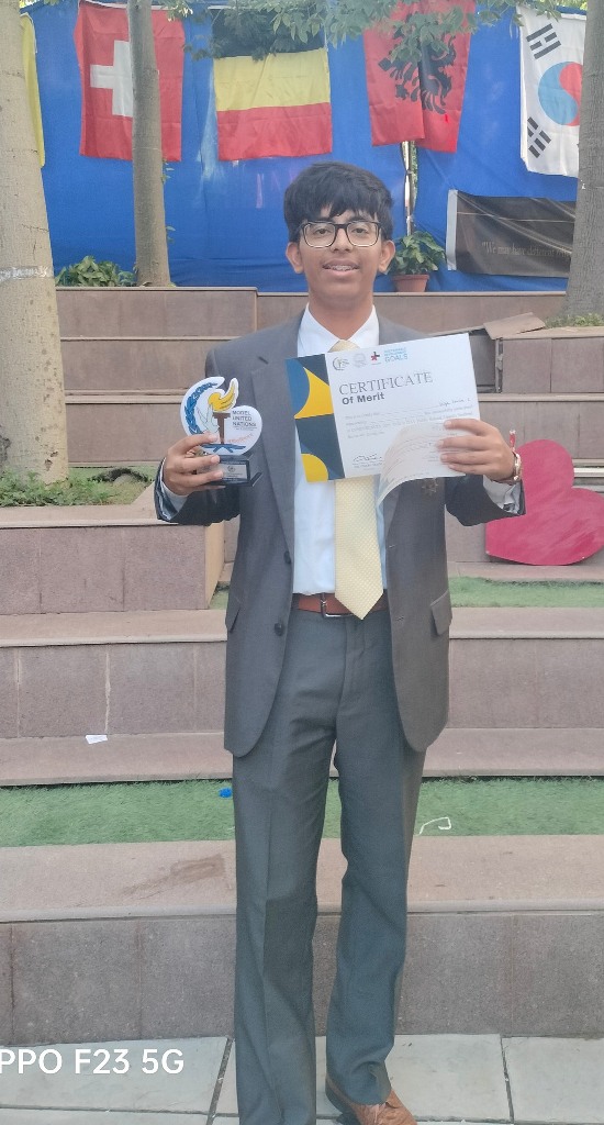 Meanwhile, Elsa and Kashvi, representing Palestine in the United Nations Security Council (UNSC), were lauded with a Verbal Mention for their persuasive diplomacy, in-depth research, and exemplary teamwork in navigating complex geopolitical discussions.