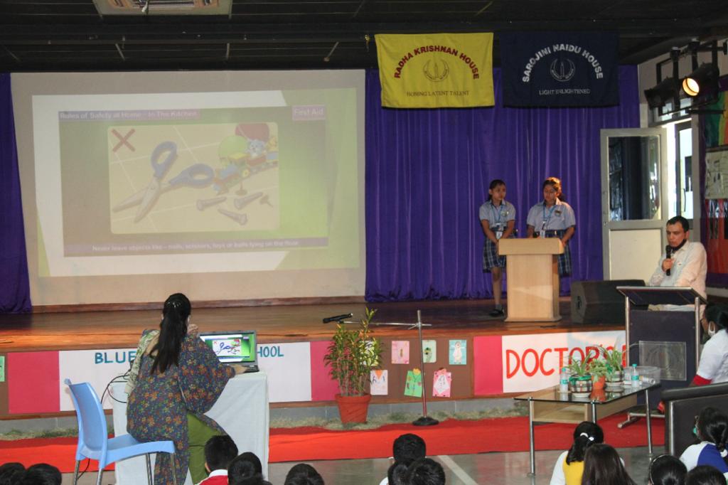 Dr. Bhat and the school nurse.The assembly was concluded with a gratitude note