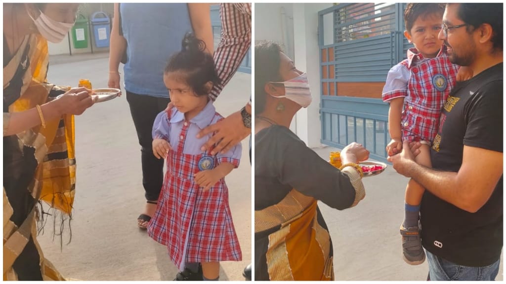 learners were welcomed with a tilak. The corridors and the classes were