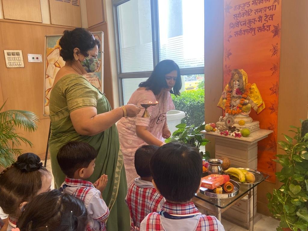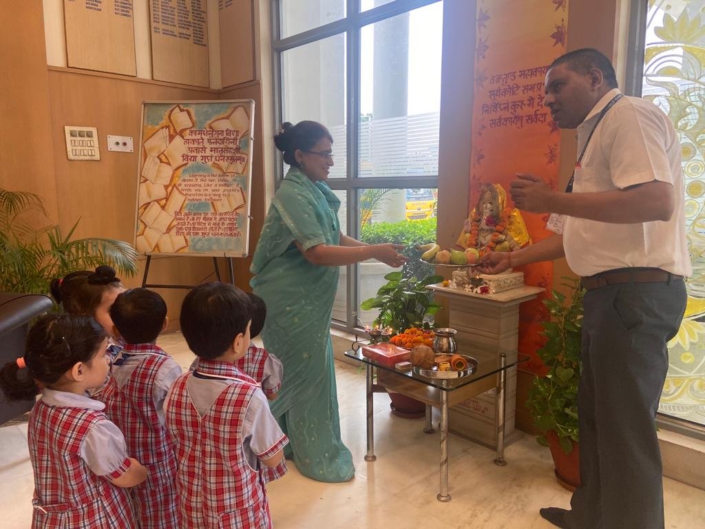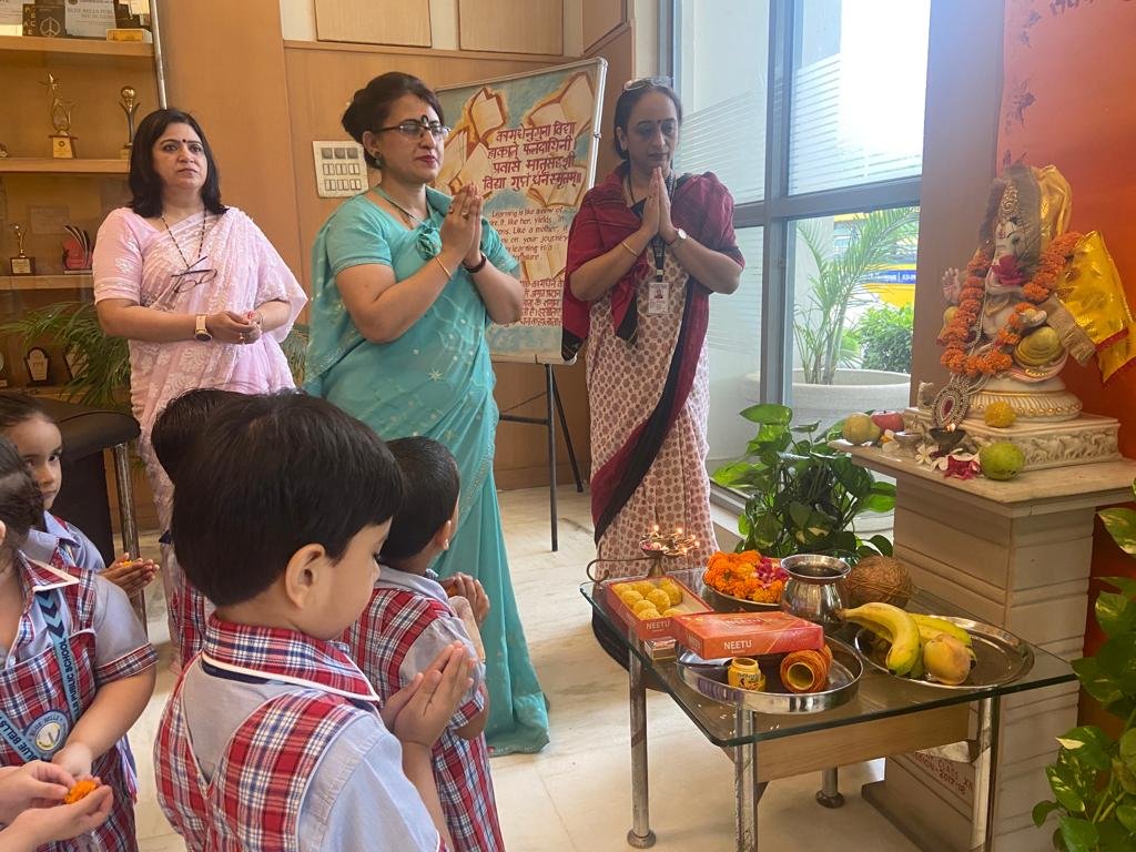 the day by praying to Lord Ganesha and Goddess Saraswati. The students of C. V.