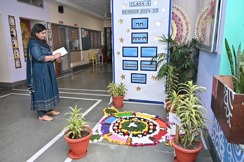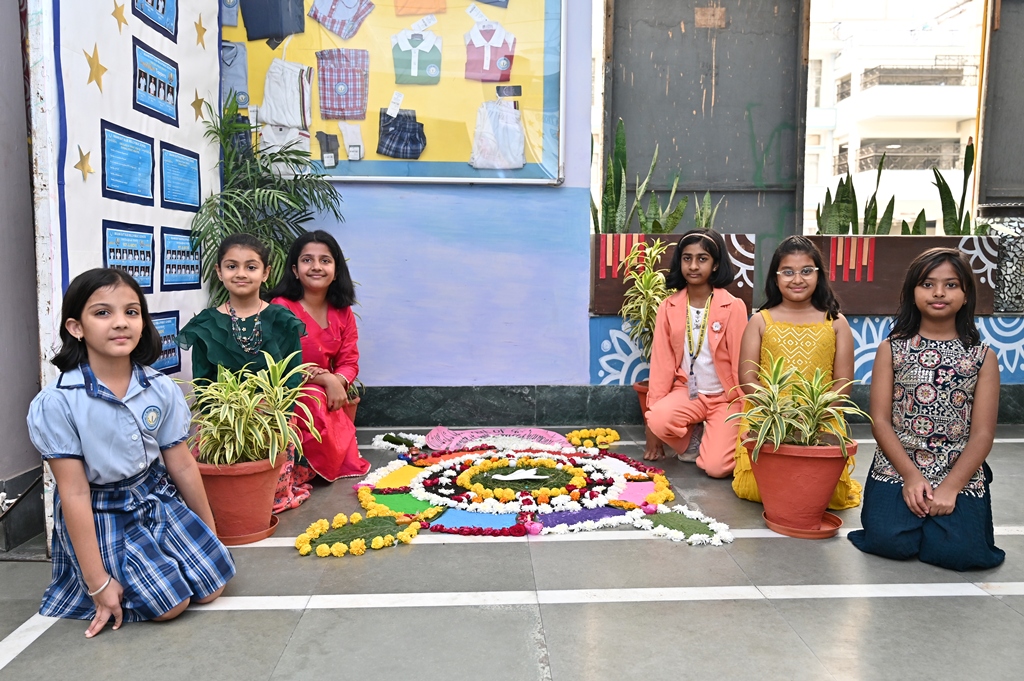 In a radiant celebration of Diwali, the Primary Wing came alive with colours and creativity during the Inter-House Rangoli Competition. Young artists poured their imagination onto the floor, weaving breathtaking patterns that beautifully captured the theme “Illuminate Nature, Celebrate Peace.”