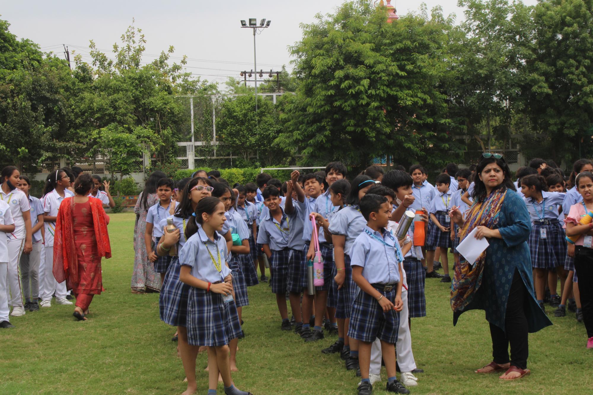 the students collected in the playground which was the safe zone allocated for them. Following all