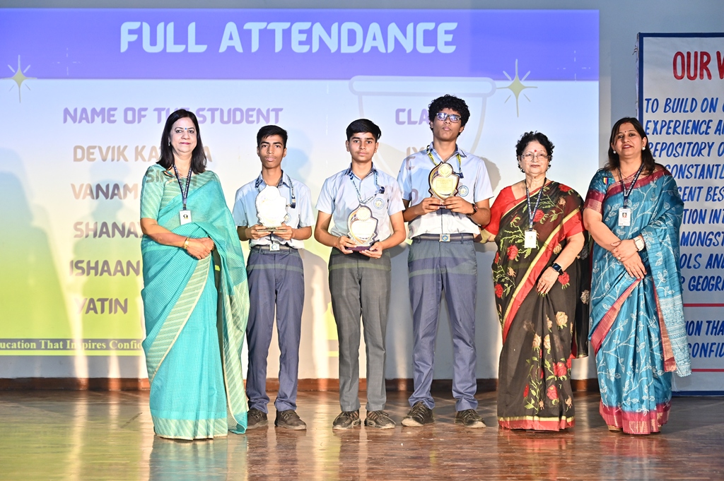 Ms. Madhu Talwar, the dynamic Middle Wing Leader, addressed the gathering with heartfelt words. She congratulated the achievers and encouraged every student to dream big and push boundaries. Her inspiring message on resilience and hard work resonated deeply with all present.