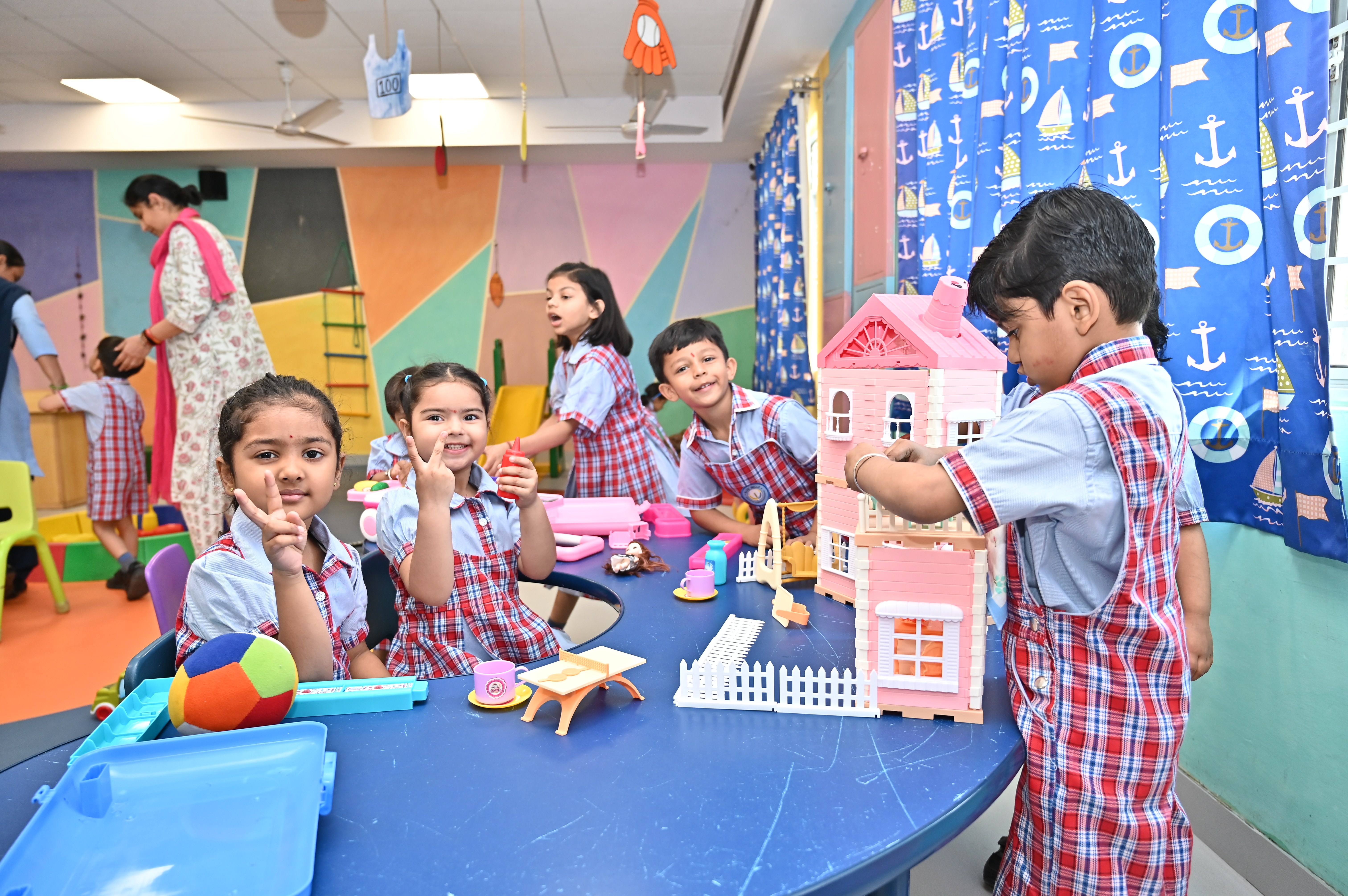 - A thematic approach is designed to stimulate children through various interactive sessions and activities.