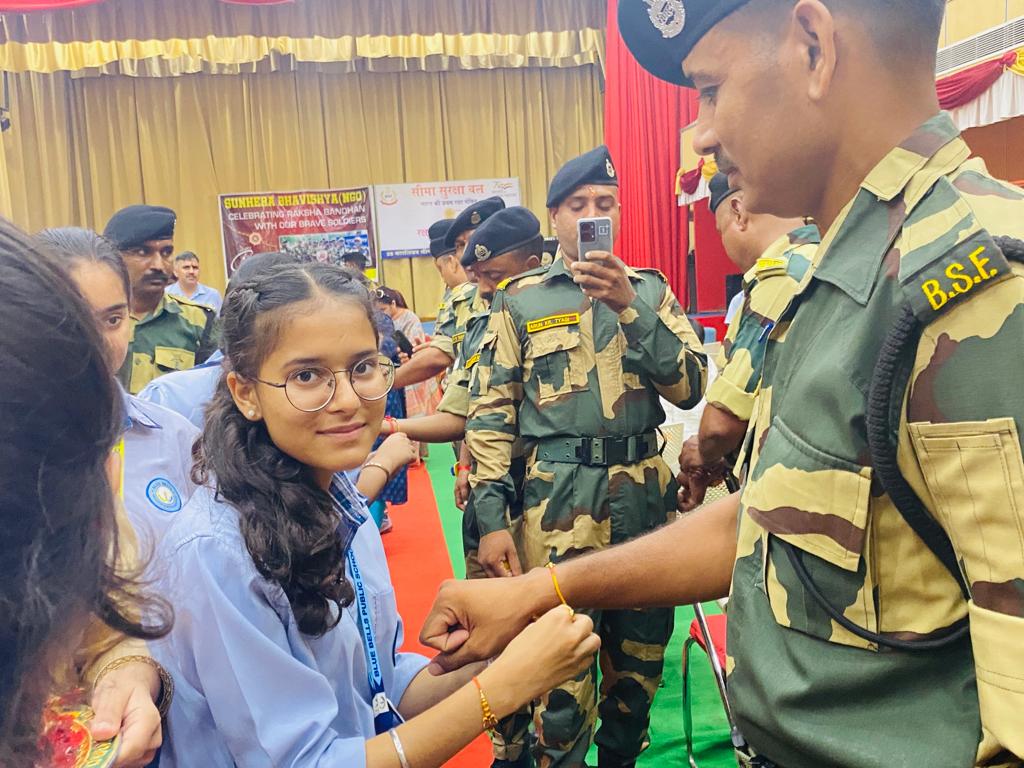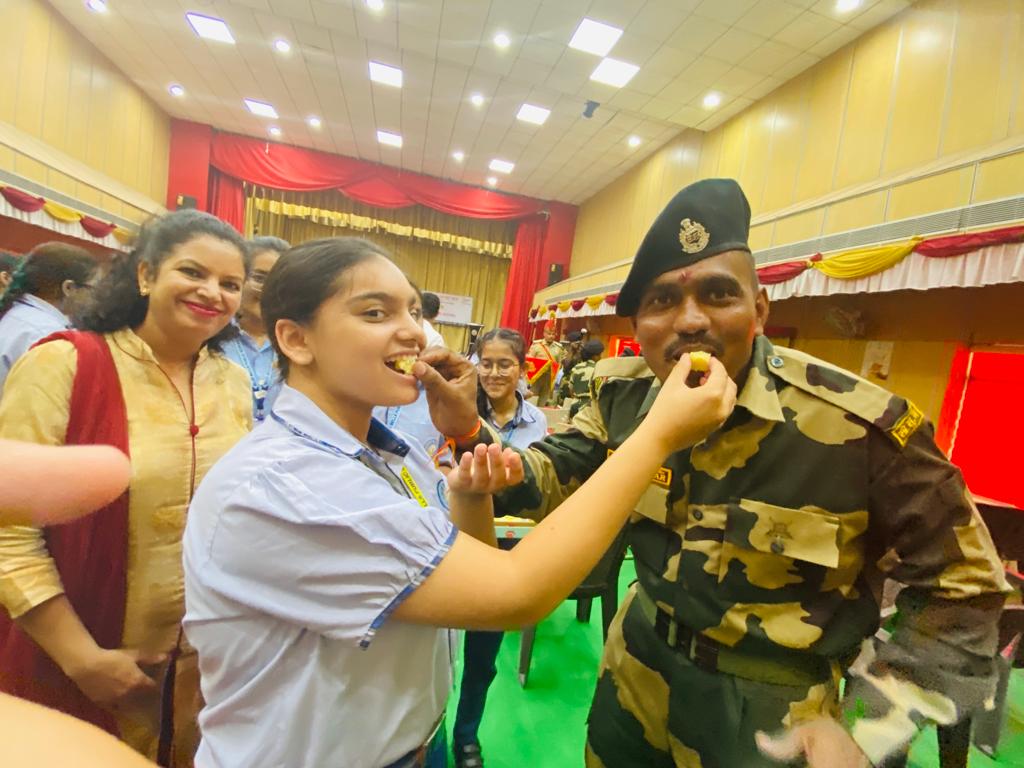 The soldiers shared their experiences of tough and challenging Army life. The students wished them health and happiness and prayed for their success in their mission to protect the motherland. One of the BSF soldiers shared,” They are always there for the security, happiness, and prosperity of the nation in the same way in which a brother sacrifices himself for the happiness of his sister.” On behalf of BSF, he thanked the school for this sensitive and emotional gesture.