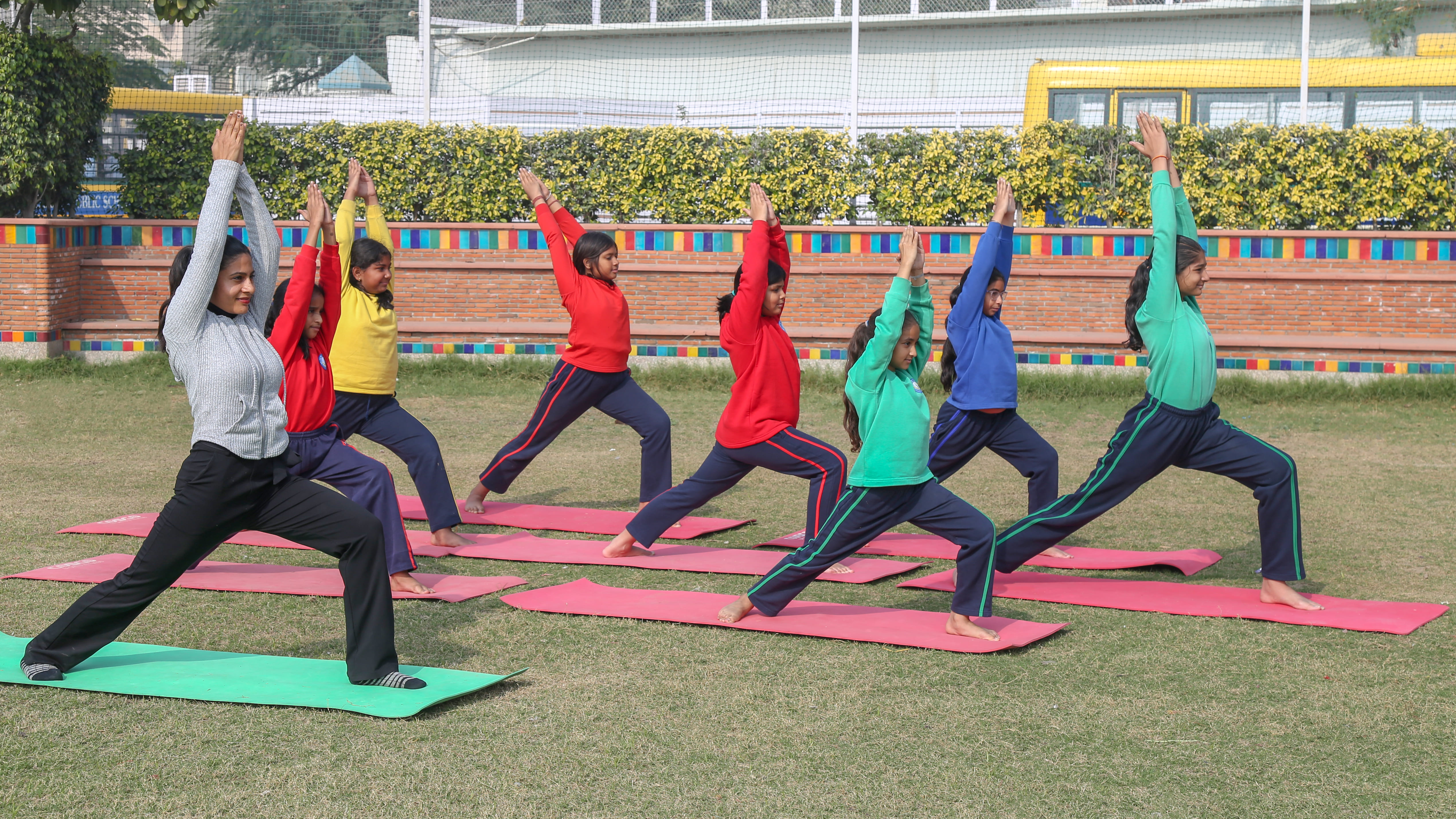 The school has engaged coaches for different sports for Classes VI–XII to give them an opportunity to display their talents in fields of their choice. It provides facilities for cricket, football, hockey, basketball, volleyball, table tennis, chess, badminton, athletics, roller skating, yoga, aerobics, school band, and so on. The school also has training facilities for Korean and Japanese martial arts like Taekwondo and Karate, which develop in students a disciplined mind and a disciplined body.