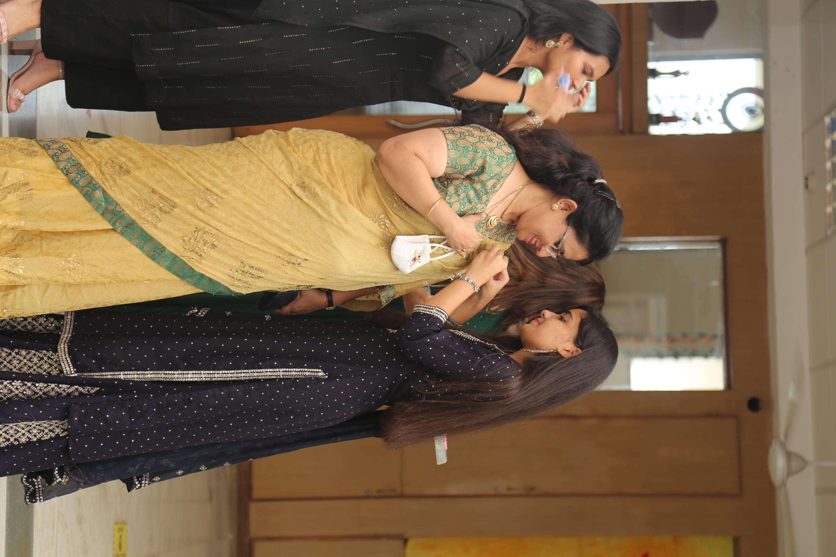 and gifted them roses and handmade greeting cards. The senior students dressed