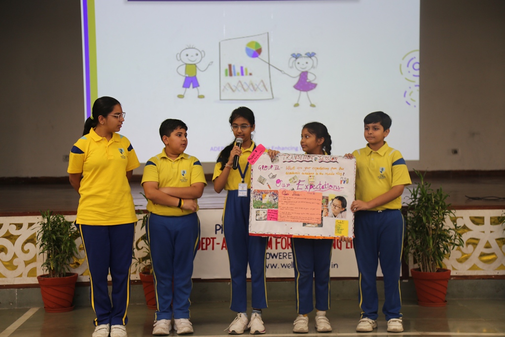 The transition from Primary to Middle School marks a pivotal milestone in a student’s academic journey, bringing new responsibilities, environments, and expectations. To support students through this important change, the Health & Wellness Programme, under the aegis of ADEPT- A Program for Enhancing Life Skills, organized a thoughtfully curated Transition Session for Grade VI students on April 24, 2025, at Brahm Dutt Blue Bells Public School. This initiative, steered by the visionary mentorship of Dr. Alka Saxena, Deputy Director (Health & Wellness), Blue Bells Group of Schools, is part of an indigenous effort to ensure a smooth and confident progression into the Middle Wing.