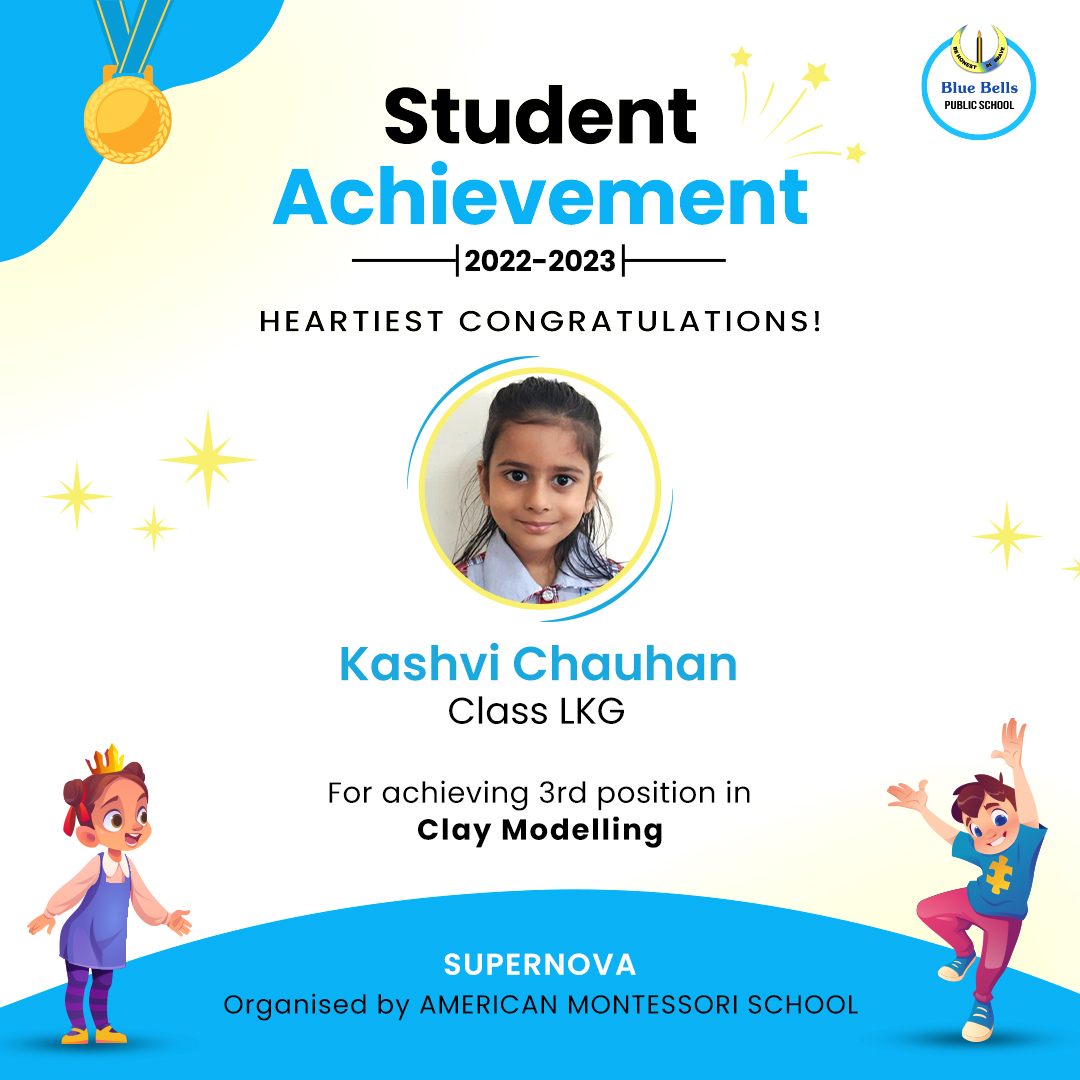 Kashvi Chauhan of Class LKG bagged the Third Position in the event ‘Clay Modelling’. She showcased superb dexterity in making National Symbols and spoke about them confidently.