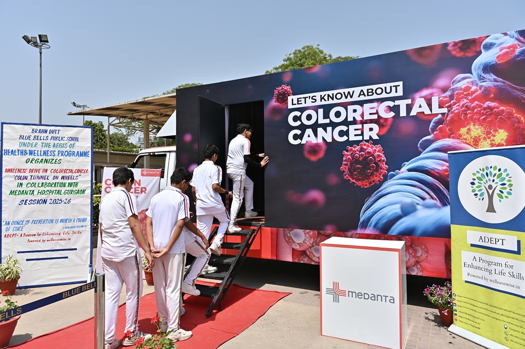 In collaboration with Medanta - The Medicity Hospital, Gurugram, Brahm Dutt Blue Bells Public School organised an informative event to raise Awareness about Colorectal Cancer for students of Classes VII to X on April 4, 2025. Specialists from Medanta conducted this experiential session through their innovative “Colon Tunnel on Wheels.”
