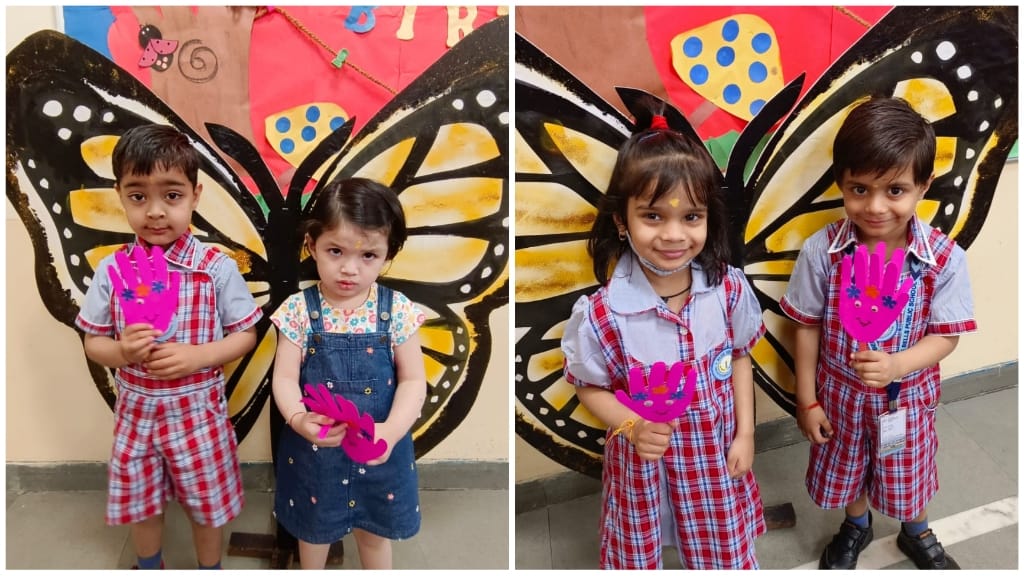 The Preprimary Wing brimmed with happiness and energy as the students of LKG walked in with smiling faces on March 28, 2022, the first day of the school.