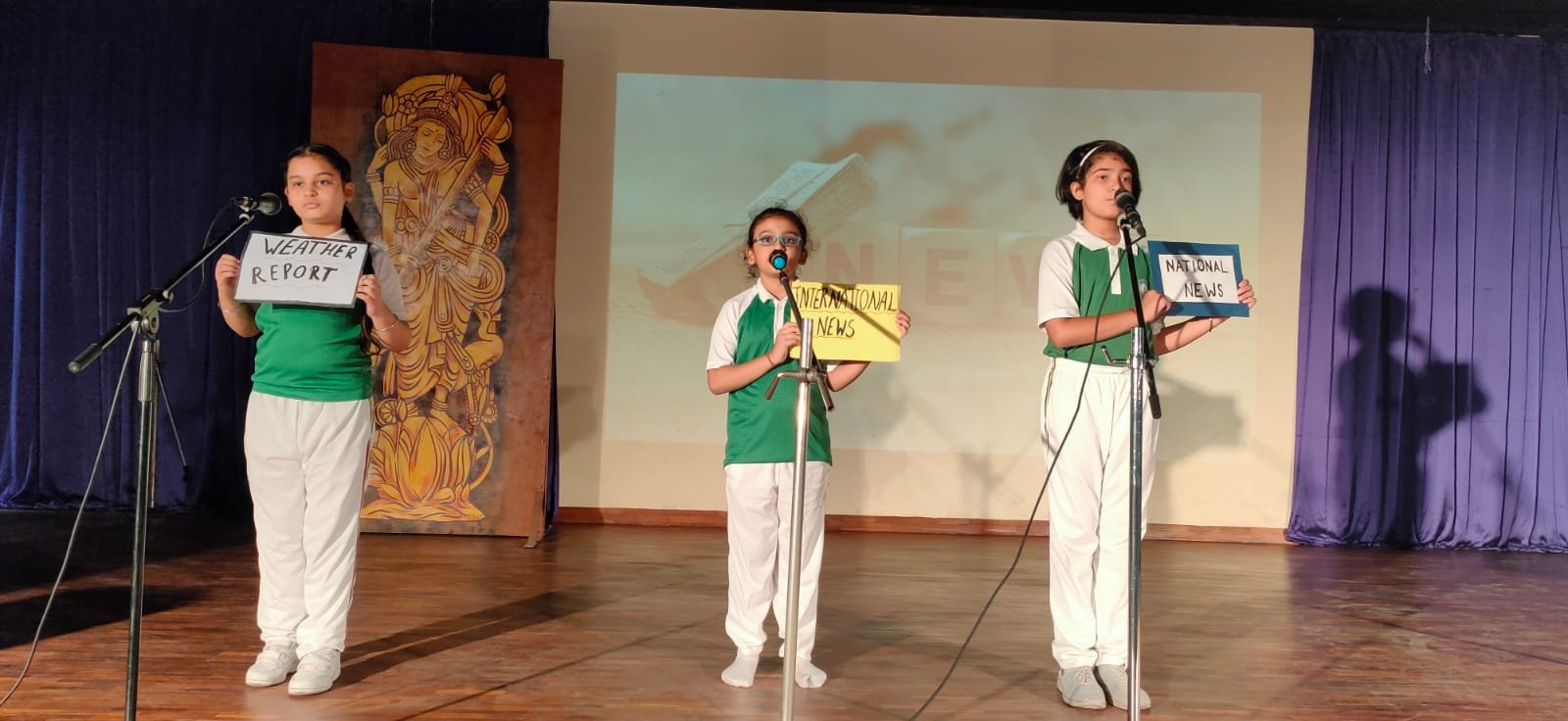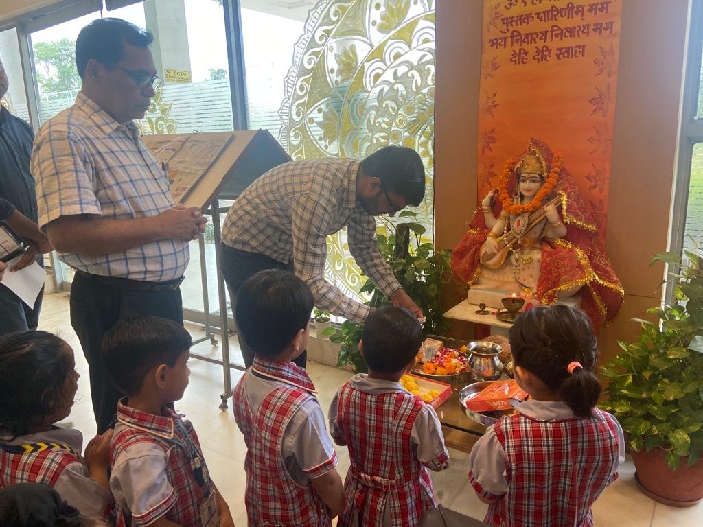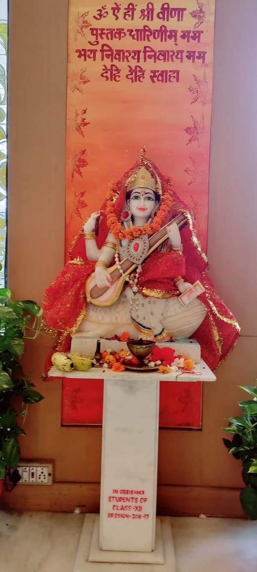 the day by praying to Lord Ganesha and Goddess Saraswati. The students of C. V.