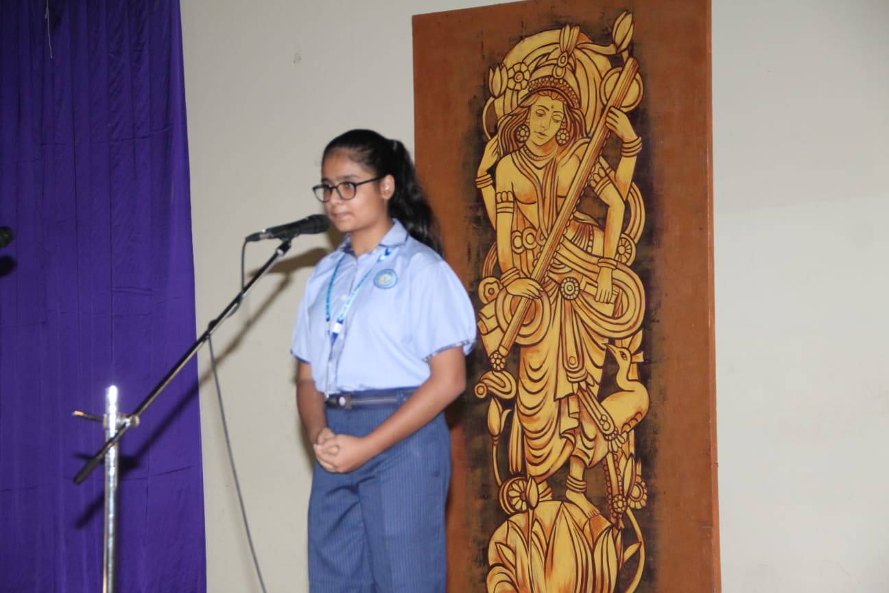 The students of class 8D conducted the assembly on July 14, 2022 on the *Importance of Recycling and World Population Day*.
