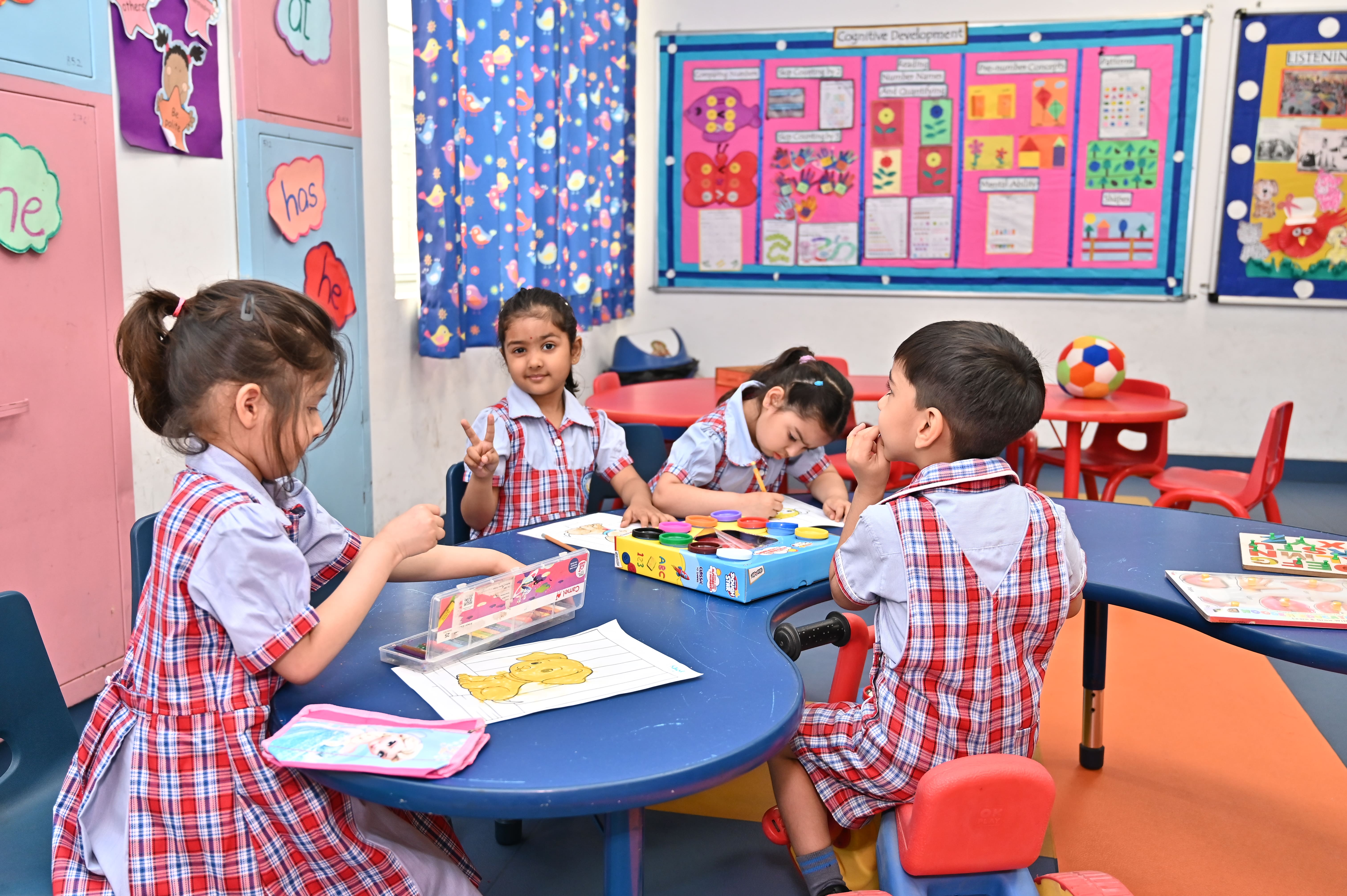 - A thematic approach is designed to stimulate children through various interactive sessions and activities.