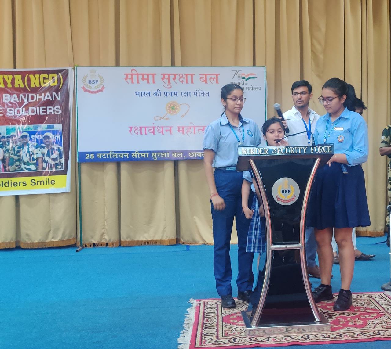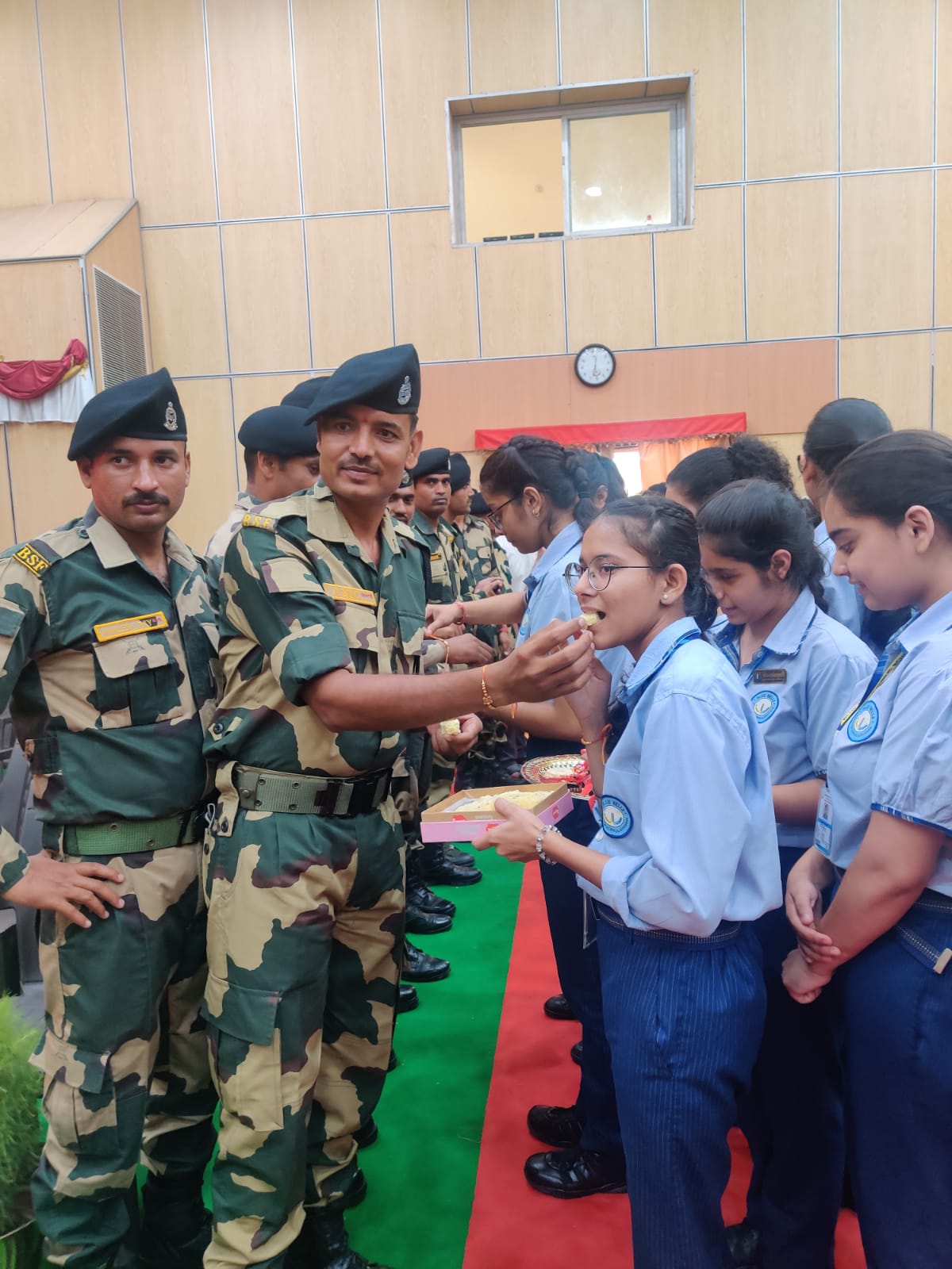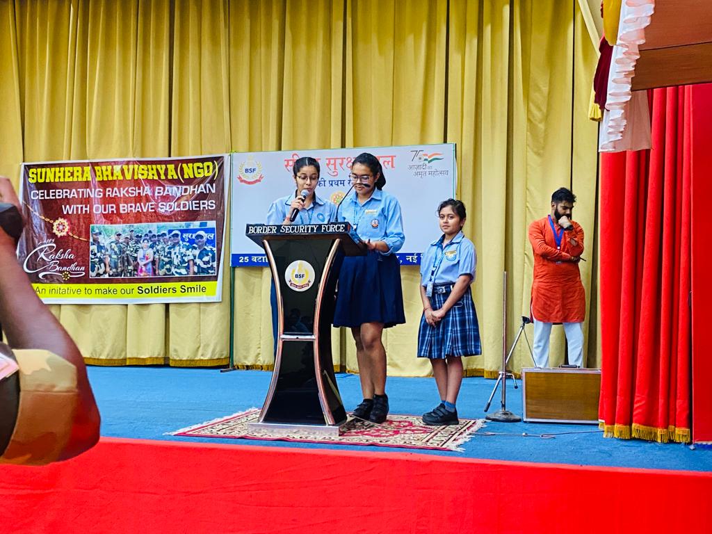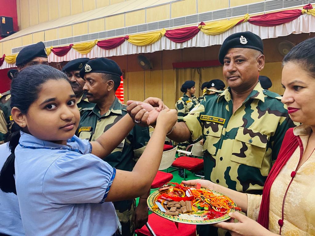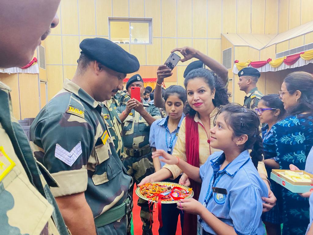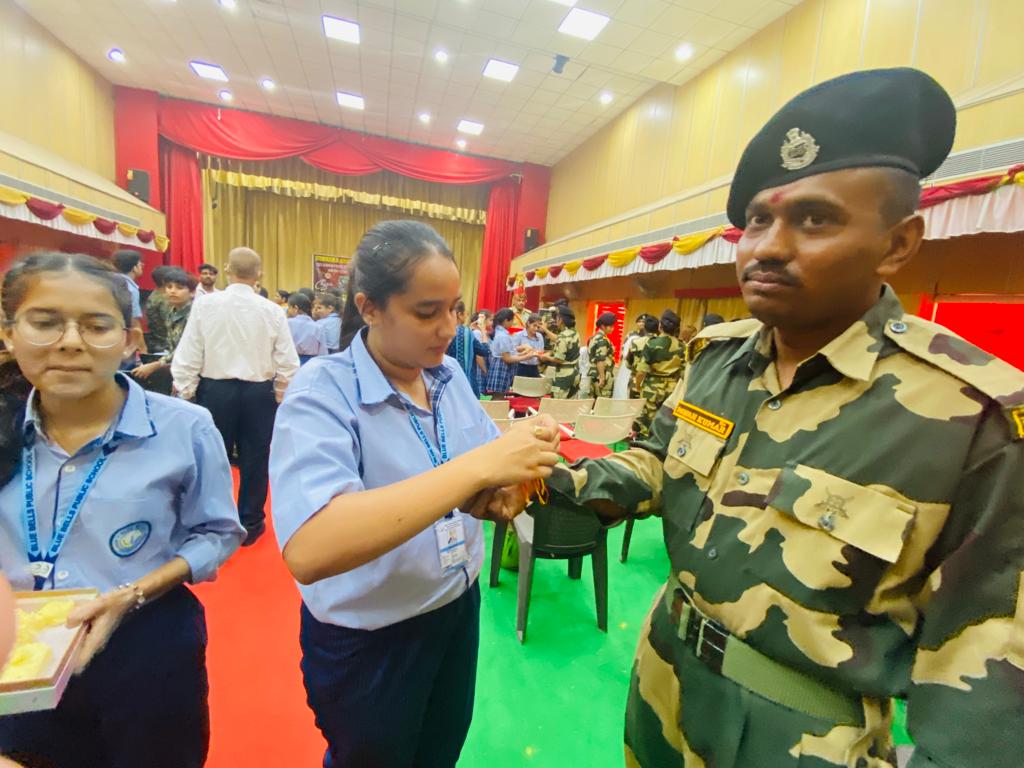 The soldiers shared their experiences of tough and challenging Army life. The students wished them health and happiness and prayed for their success in their mission to protect the motherland. One of the BSF soldiers shared,” They are always there for the security, happiness, and prosperity of the nation in the same way in which a brother sacrifices himself for the happiness of his sister.” On behalf of BSF, he thanked the school for this sensitive and emotional gesture.